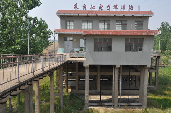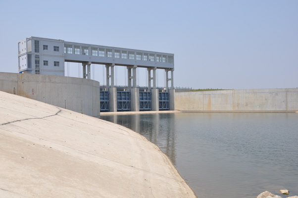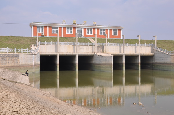 八里河閘  潁上縣八里河閘位于沙潁河潁右右堤,新建八里河閘為6孔涵洞,三孔一聯(lián)。控制流域面積483km2,5年一遇設(shè)計除澇流量264m3/s,垂直水流方向總